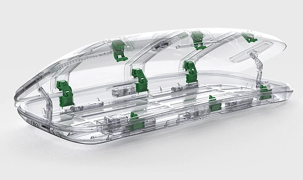 · Верхняя крышка из АБС-пластика толщиной 3 мм с пятью рёбрами жёсткости для плавного открытия и защиты от деформации.