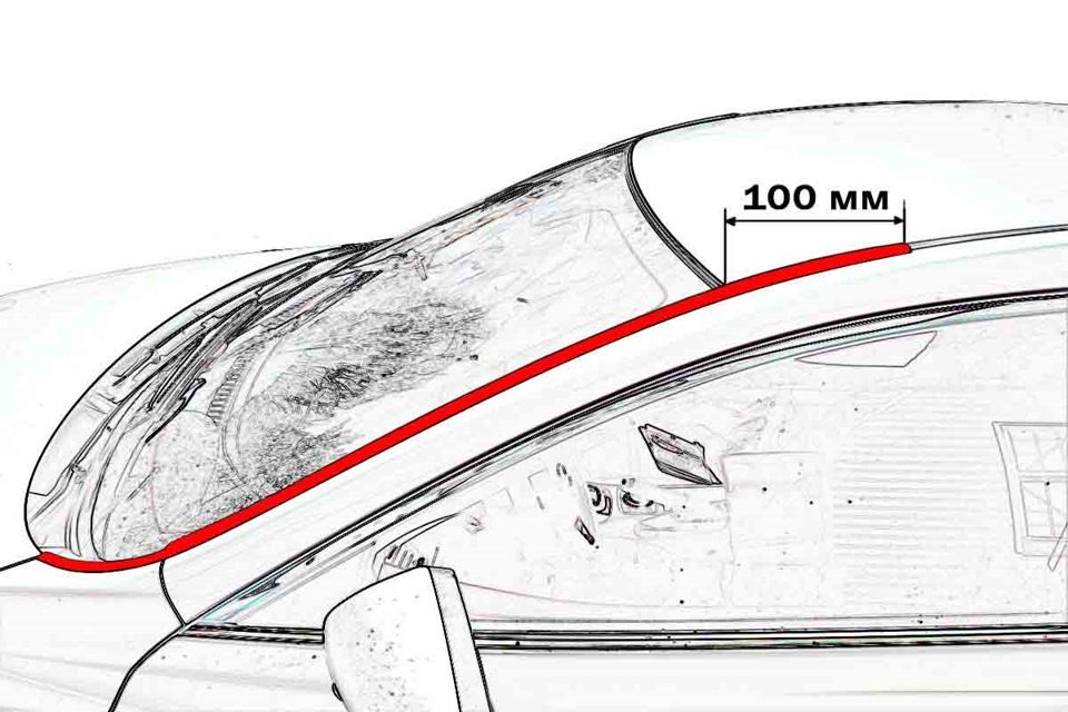 Также дефлектор можно обрезать, отступив от верхней границы лобового стекла не менее 15 см.