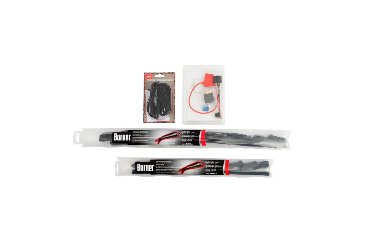 Щетки Burner с системой подогрева с питанием от автомобильной сети обладают надежной и практичной конструкцией. В каждом комплекте идут усиленные провода и 9 универсальных креплений, обеспечивающих совместимость практически с любым автомобилем известных российских и зарубежных марок. При износе чистящего полотна (резинок) нет необходимости менять щетки, можно просто купить новый комплект резинок взамен изношенных. В комплекте "Реле" имеется все необходимое для подключения щеток на отдельную кнопку либо на штатную в кнопку в салон автомобиля.