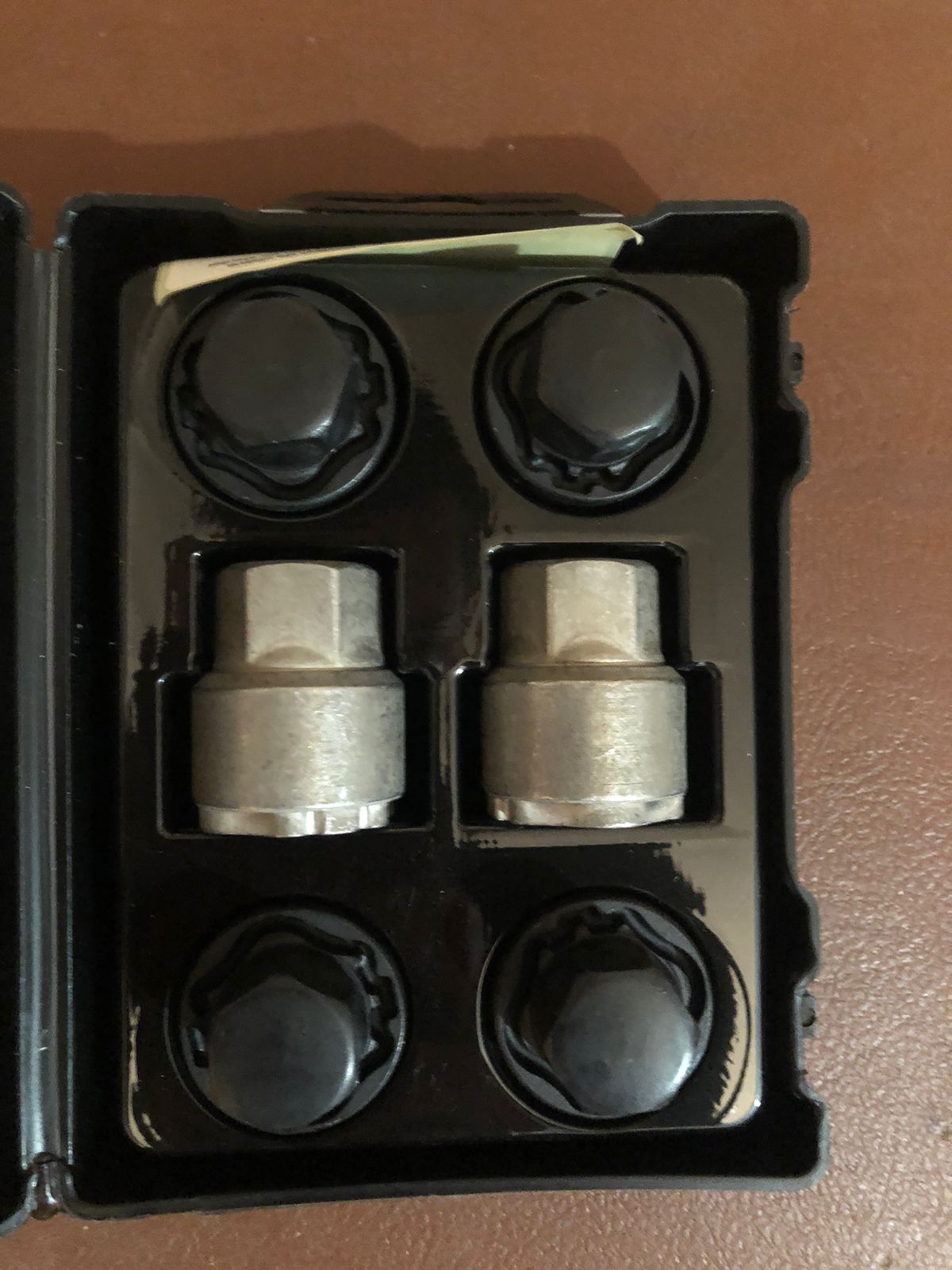 4 секретных гайки с поворотной шайбой черного цвета и 2 ключа в комплекте.