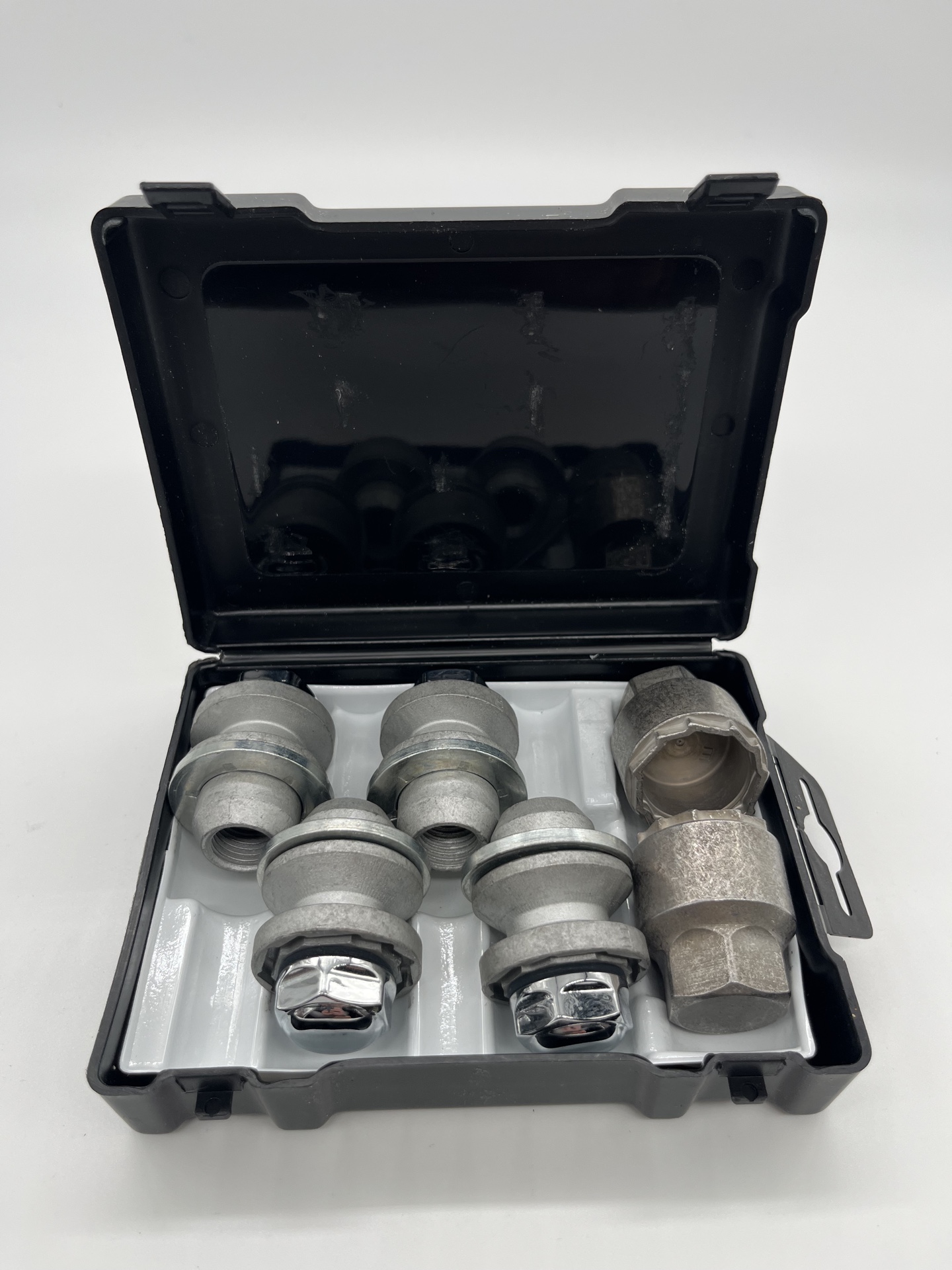 4 секретных гайки с кольцом и 2 ключа в комплекте.